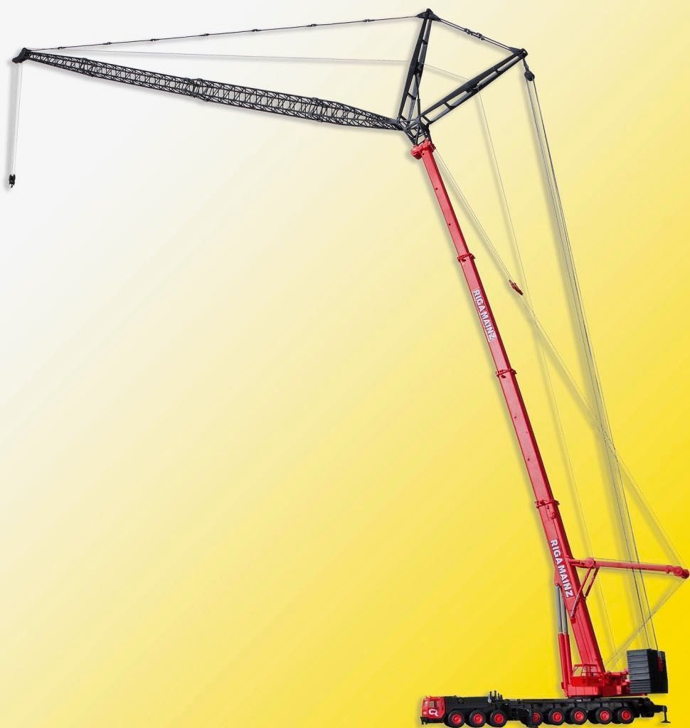 Bausatz. Vorbilddaten: Ab 1988 wurde bei LIEBHERR dieser 8-achsige Teleskopkran LTM 1400 gefertigt, der zwischenzeitlich zu dem erfolgreichsten Gerät der 400-Tonnen-Klasse zählte. Er bietet Mobilität und Vielseitigkeit. Trotz 96 t Gesamtgewicht inklusive 50 m Teleskopausleger ist der nur 17,5 m lange Autokran kompakt und wendig. Der Fahrantrieb erfolgt durch einen DAIMLER-BENZ Turbomotor mit 390 kW/530 PS. Am Teleskopausleger ist eine Teleskop-Abspannausrüstung angebracht. Diese dient der Traglaststeigerung um bis zu 50%. Beim Transport des Autokranes auf der Straße verbleibt diese Abspannung auf dem Ausleger abgelegt am Fahrzeug. Ein 2. Hubwerk wird am Heck des Kranoberwagens angebolzt. An diesem wird auch das Gegengewicht von bis zu 125 t aufgelegt. Am Hauptausleger wird eine Hubhöhe von 46,9 m erreicht. Mit der wippbaren Gitterspitze beträgt die Hubhöhe sogar max. 132 m, wobei eine Ausladung von 96 m möglich ist. Auf der Baustelle kann der Kran voll aufgerüstet mit Ballast bis zu einem Gesamtgewicht von 272 t verfahren werden. Maße: Fahrstellung L 23,5 x B 4 x H 6 cm, ausgefahren L 23,5 x B 17 x H ca. 70 cm. Schwierigkeitsgrad: 3 (Profis).
