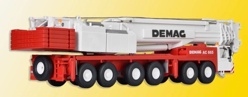 Bausatz. Vorbilddaten: Dieser DEMAG AC 665 ist ein 250-Tonner auf nur 6 Achsen mit 58 m langem Hauptausleger. Das Transportgewicht beträgt 72 t bei voller Ausrüstung, einschließlich Hauptausleger und Abstützungen. Unabhängige Hinterachslenkung ermöglicht ein Arbeiten auch in engsten Baustellen. Das fein abgestufte Getriebe mit 16 Gängen sorgt für optimale Anpassung an alle Straßen- und Geländeverhältnisse. Maße: Fahrstellung L 21 x B 4 x H 5 cm, ausgefahren L 19 x B 14 x H 59 cm. Schwierigkeitsgrad: 3 (Profis).
