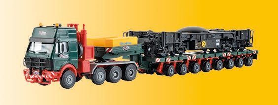 Produktinformationen "Kibri 13601 - Mercedes-Benz SK mit SCHEUERLE Plattformwagen und Unterteil Schienenkran H0 1:87"