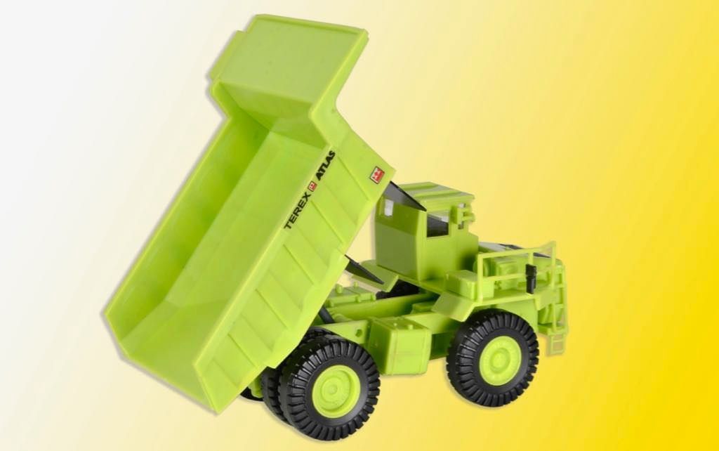 Bausatz. Vorbilddaten: Der TEREX Muldenkipper 3308 E Plus ist ein robuster Kipper mit 50 t Nutzlast bei einem Fassungsvermögen von 34 m³. Dieser Muldenkipper wurde für Einsätze im schweren Erdbau, im Bergbau und in Steinbrüchen konstruiert und ist in idealer Weise für Ladegeräte der 5 – 10 m³ Klasse geeignet. Er hat einen Cummins-Dieselmotor KTTA 19c mit zweistufiger Turboaufladung und Ladeluftkühlung. Die Nutzleistung beträgt ca. 481 kW/654 PS bei 2100 U/min. Höchstgeschwindigkeit 60 km/h. Maße: L 10 x B 5,5 x H 5 – 9 cm. Schwierigkeitsgrad: 2 (Fortgeschrittene).