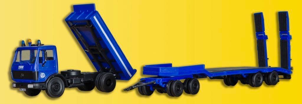 Produktinformationen "Kibri 18458 - Mercedes-Benz Kipper mit Tiefladeanhänger THW H0 1:87"
