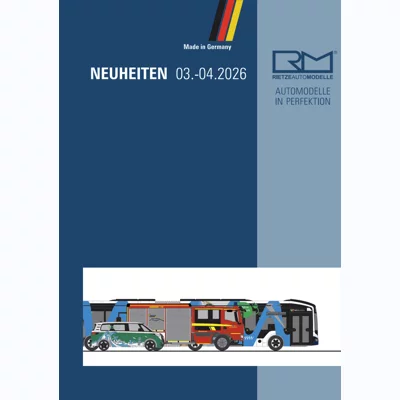 Entdecken Sie die neuen Rietze Modellfahrzeuge Frühjahr 2026 und erweitern Sie Ihre Sammlung mit detailgetreuen Highlights im Maßstab 1:87 (H0). Die aktuellen Neuheiten begeistern mit einer starken Auswahl aus Feuerwehr-, Rettungsdienst- und Katastrophenschutzfahrzeugen, modernen Stadt- und Reisebussen sowie innovativen E- und Wasserstoffbussen namhafter Verkehrsunternehmen aus Deutschland und Europa.