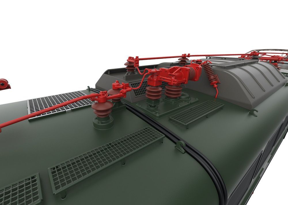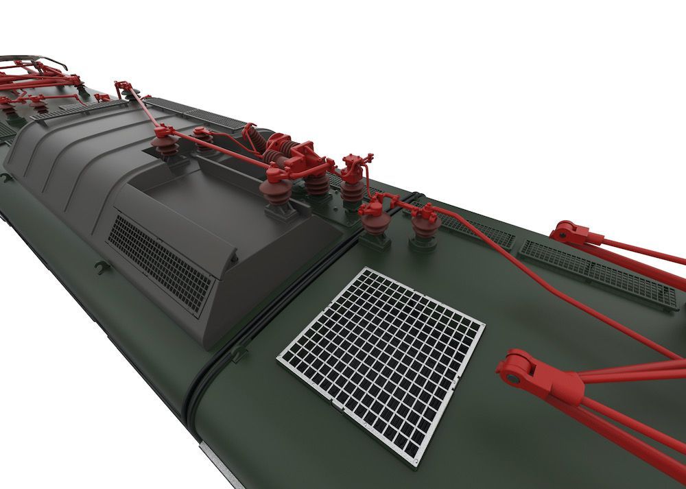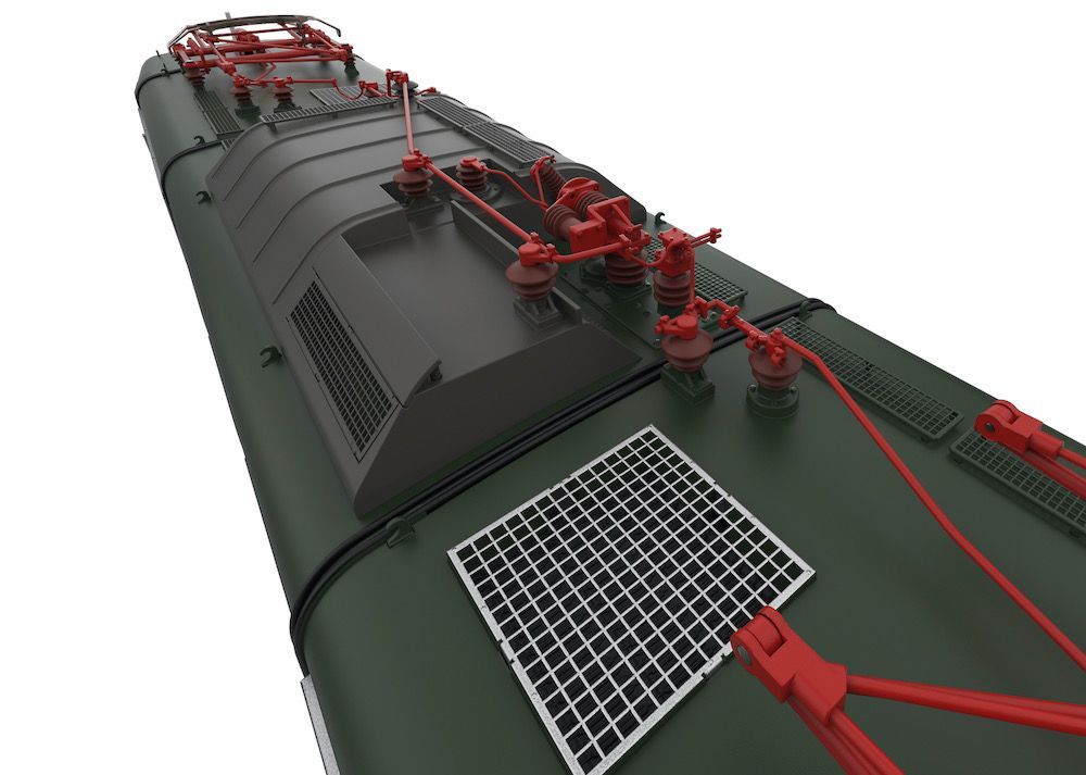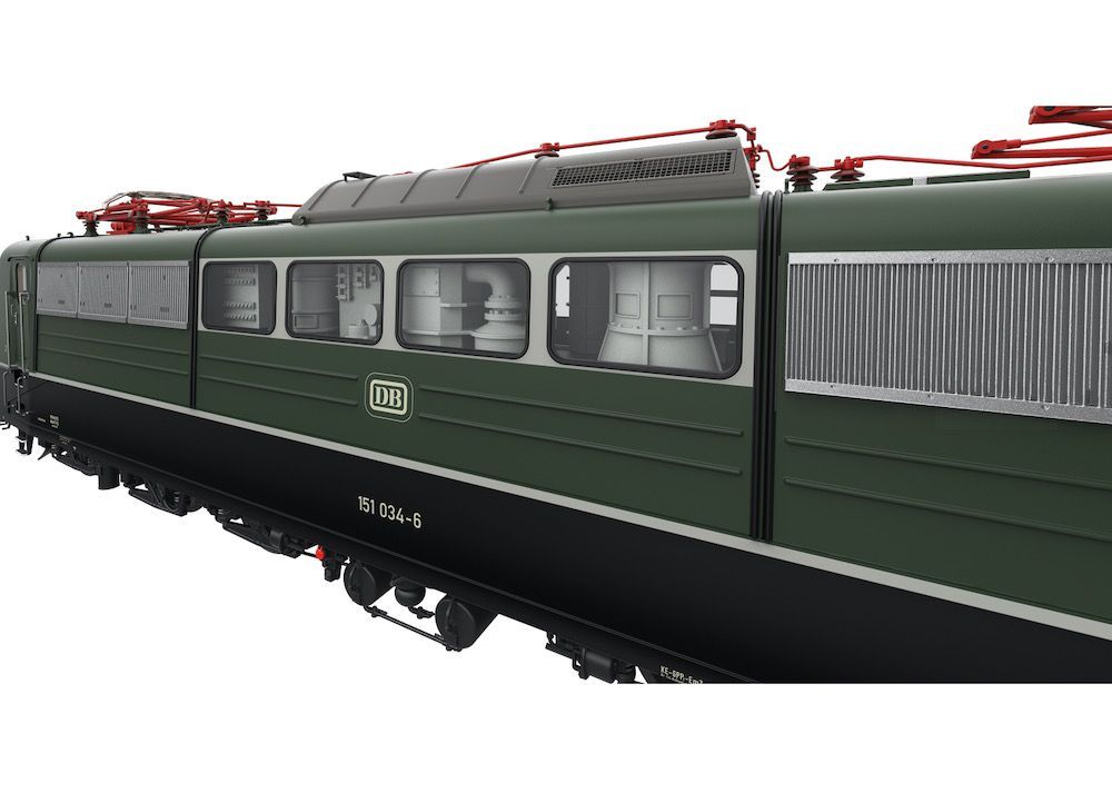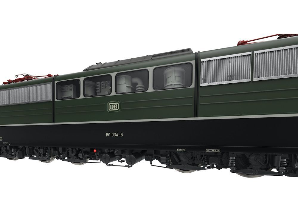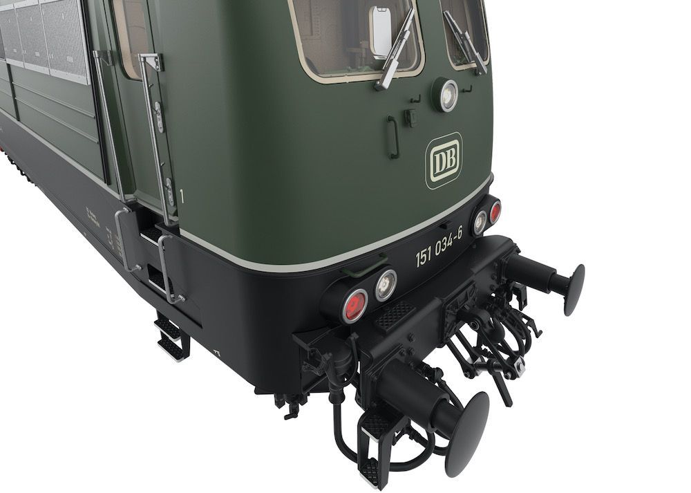 Komplette hochdetaillierte Neuentwicklung aus Zinkdruckguss mit angesetzten Messing-Schleudergussteilen.Hochdetailliertes Profimodell.Im Digitalbetrieb motorisch heb- und senkbare Dachstromabnehmer.Digital schaltbare Telex-Kupplung vorne und hinten.Äußerst umfangreiche Soundausstattung.Fahrpultbeleuchtung.Strompuffer.Schraubenkupplungen für vorn und hinten im Lieferumfang.