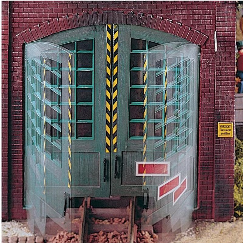 Durch den Einbau der Automatik können die Tore vom Lokschuppen Sonneberg, # 62001, von der Lok selbsttätig geöffnet und geschlossen werden. Die modulare Bauweise der PIKO-Automatik ermöglicht es, auch bei verlängerten Lokständen die Torschließ-Automatik funktionstüchtig zu montieren.