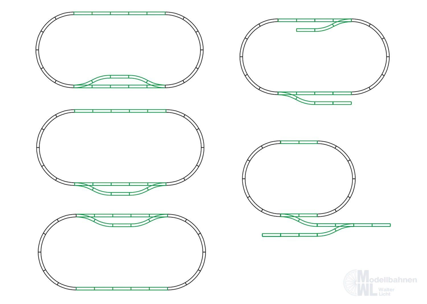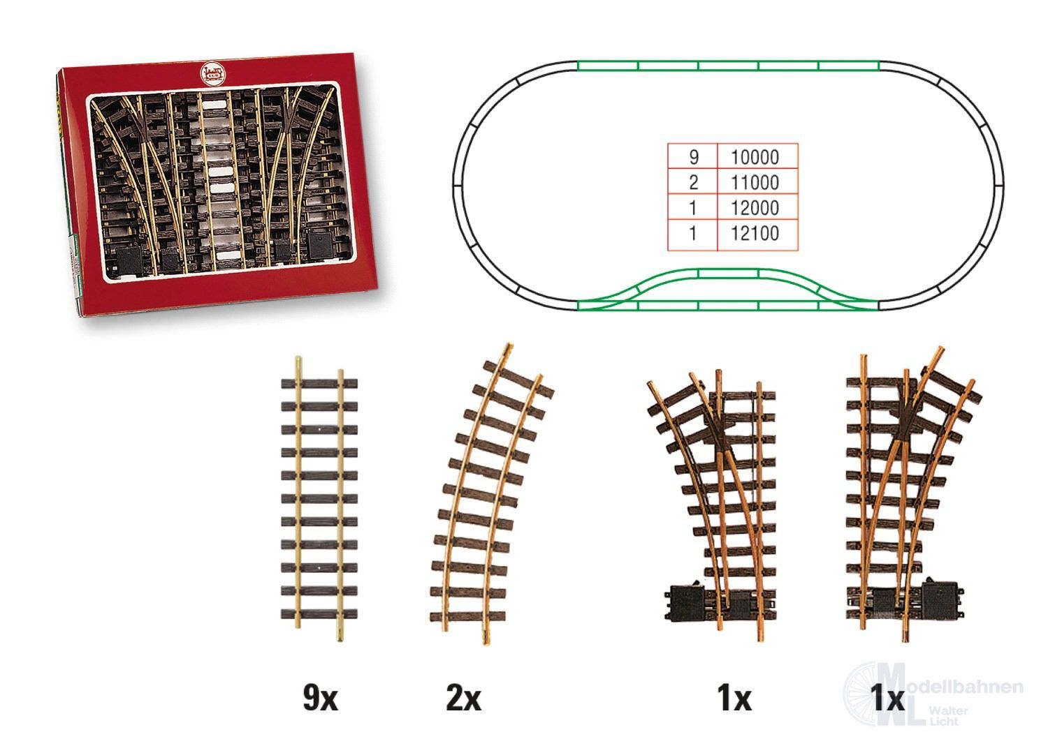 Mit diesem Set können Sie den Gleiskreis aus Ihrem LGB-Starter Set zu einem Oval mit einem Ausweichgleis ausbauen. Dann können sich zwei Züge begegnen. Oder Sie können einen Zug abstellen, Wagen rangieren und die Lok von einem Ende des Zugs zum anderen umsetzen. Die stabile Box enthält: 1x 12000 Handweiche rechts, 1x 12100 Handweiche links, 9x 10000 gerade Gleise, 2x 11000 gebogene Gleise.