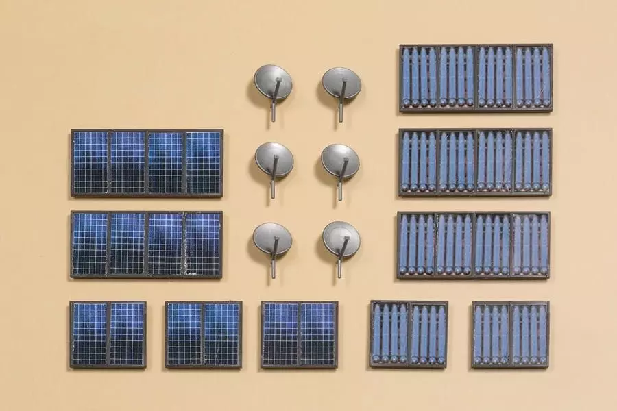 Produktinformationen "Auhagen 41651 - Sat.-Anlagen, Solarkollektoren H0 1:87"