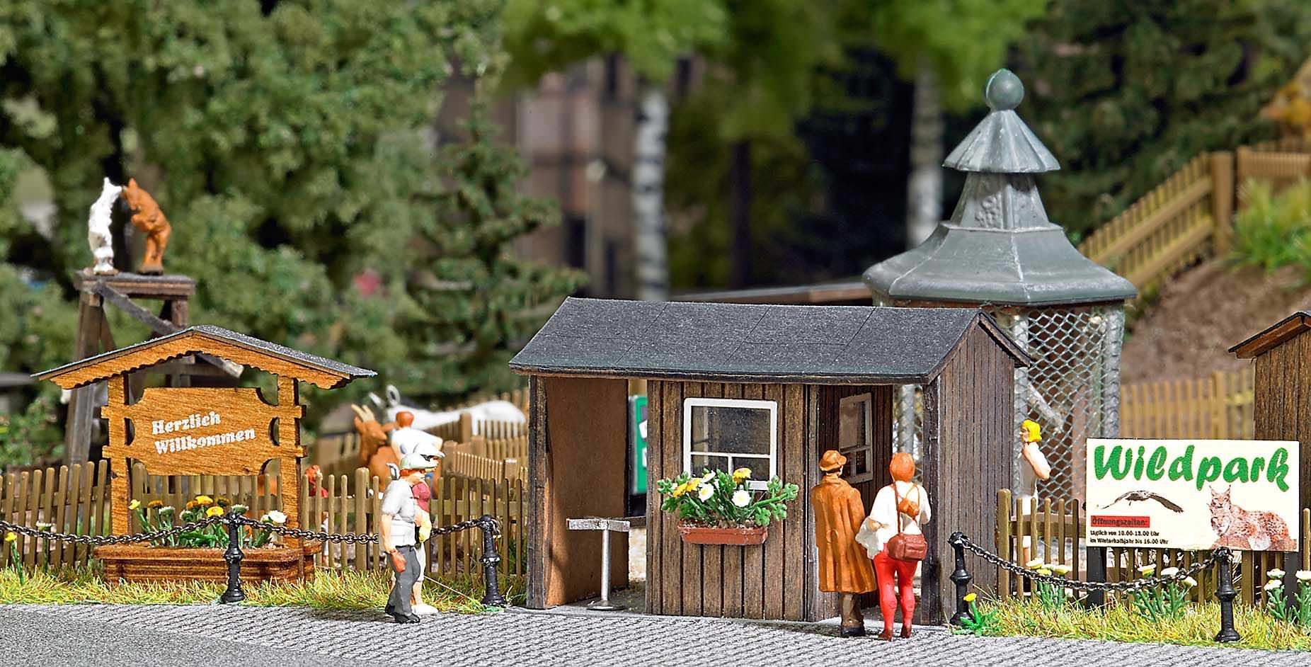 Die Vielfalt dieses Themas wird von Busch mit der Wildpark-Serie perfekt in Szene gesetzt. Die Gebäude und Zubehörartikel, vom Kassenhaus bis zum Wildpark Ausgestaltungs-Set, bieten heimatlichen und exotischen Tierarten gleichermaßen eine adäquate Behausung. Nahezu unendlich ist der Variantenreichtum, der sich für Modellbahnanlagen und im Dioramenbau bietet. Auch ein Vogelpark, ein kleiner Zoo oder Tierpark kann realistisch dargestellt werden.