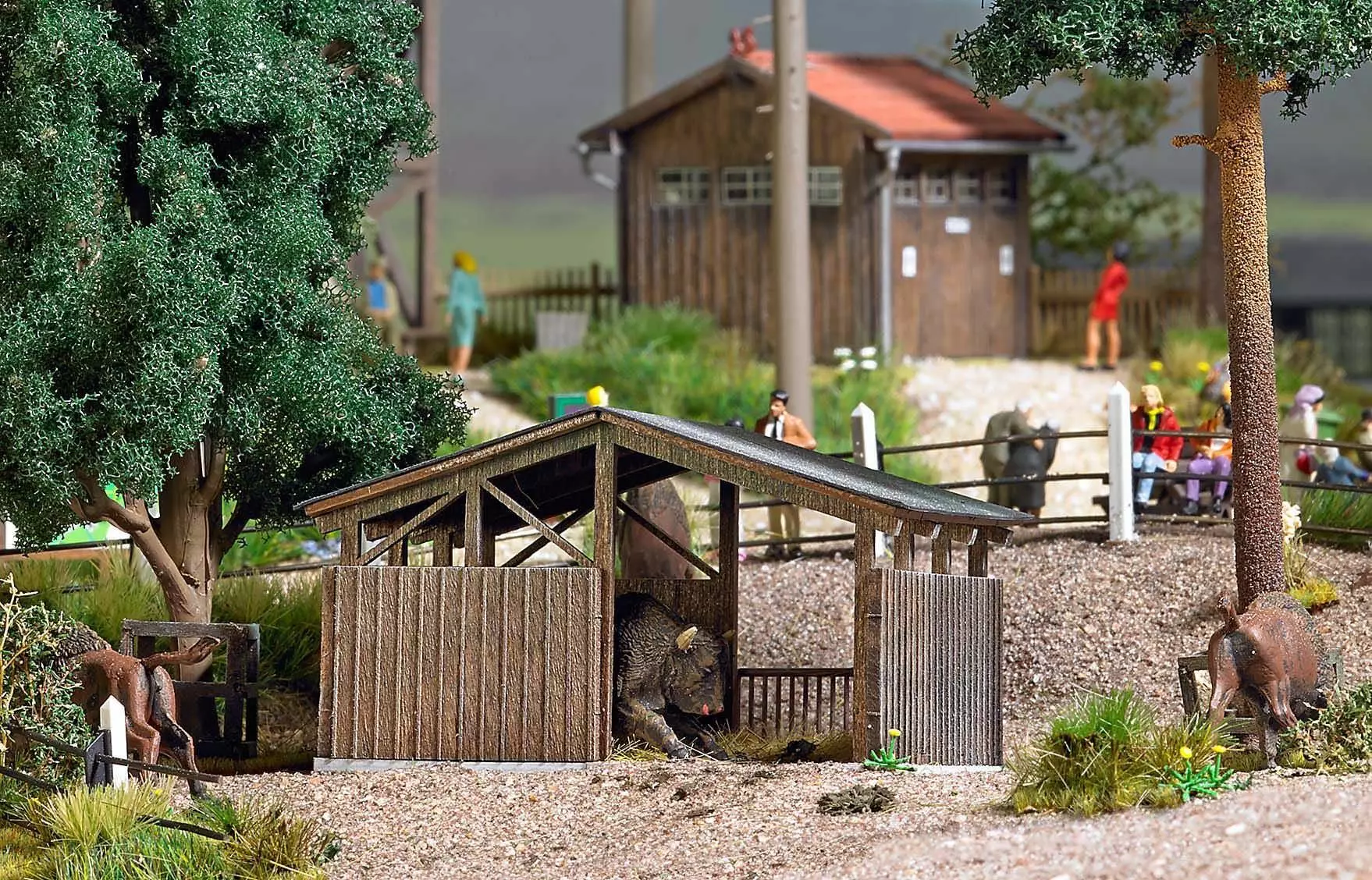 Die Vielfalt dieses Themas wird von Busch mit der Wildpark-Serie perfekt in Szene gesetzt. Die Gebäude und Zubehörartikel, vom Kassenhaus bis zum Wildpark Ausgestaltungs-Set, bieten heimatlichen und exotischen Tierarten gleichermaßen eine adäquate Behausung. Nahezu unendlich ist der Variantenreichtum, der sich für Modellbahnanlagen und im Dioramenbau bietet. Auch ein Vogelpark, ein kleiner Zoo oder Tierpark kann realistisch dargestellt werden.