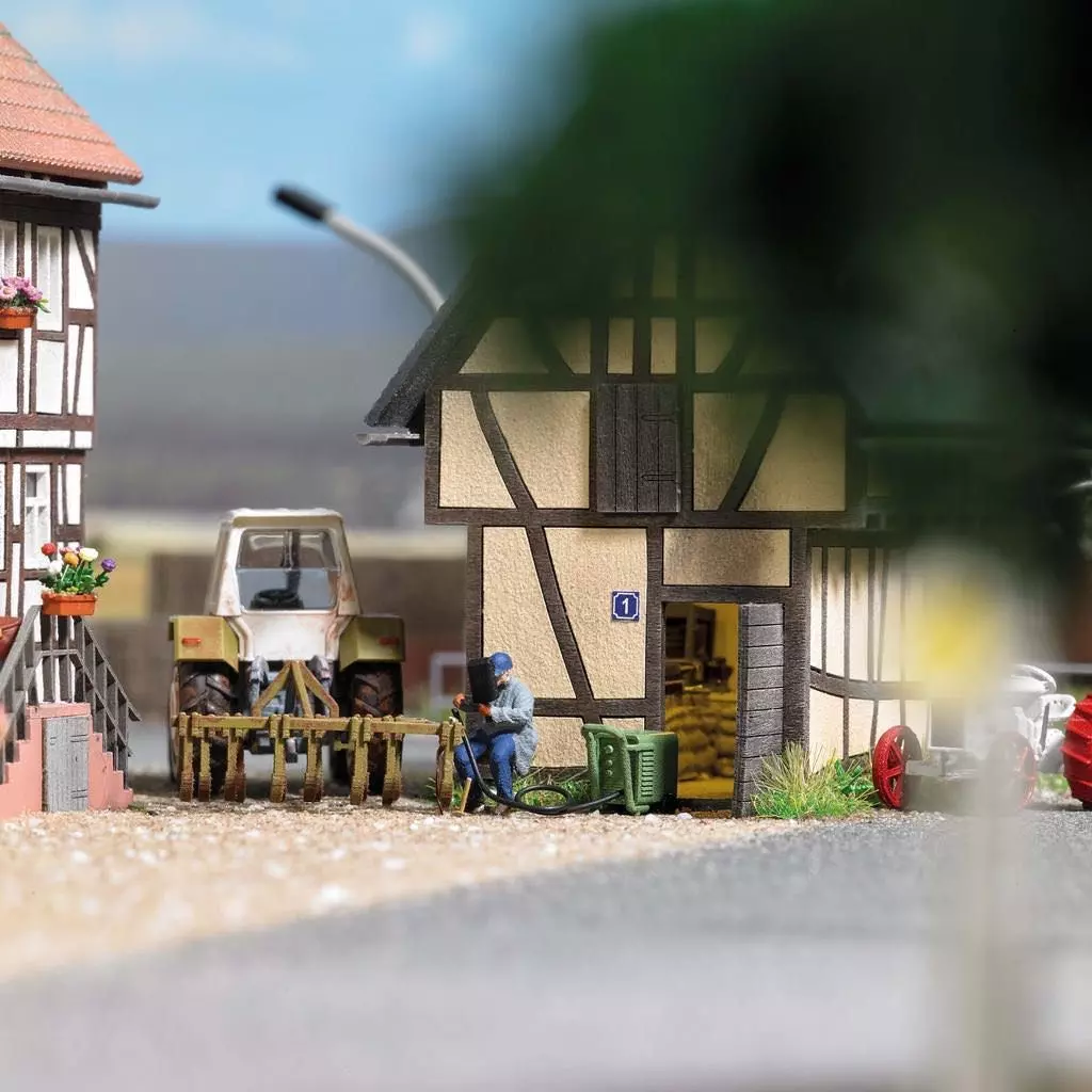 Action Set für die realistische Belebung Ihrer Modellwelt. Mittelpunkt ist das vorbildgetreue Modell eines Gerätes oder einer Maschine mit einer Figur in passender Position (bemaltes Fertigmodell) und viel Zubehör.
