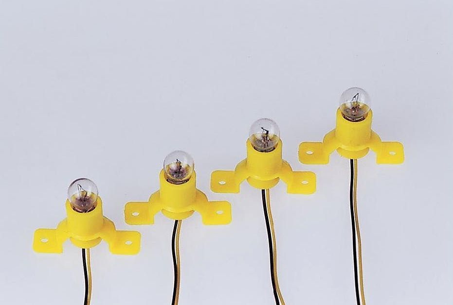 4 Stück Schraubsockel mit Glühlampen 19 V E 5,5 für den Einsatz als Innenbeleuchtung in allen G- und Spur 1 Gebäuden.