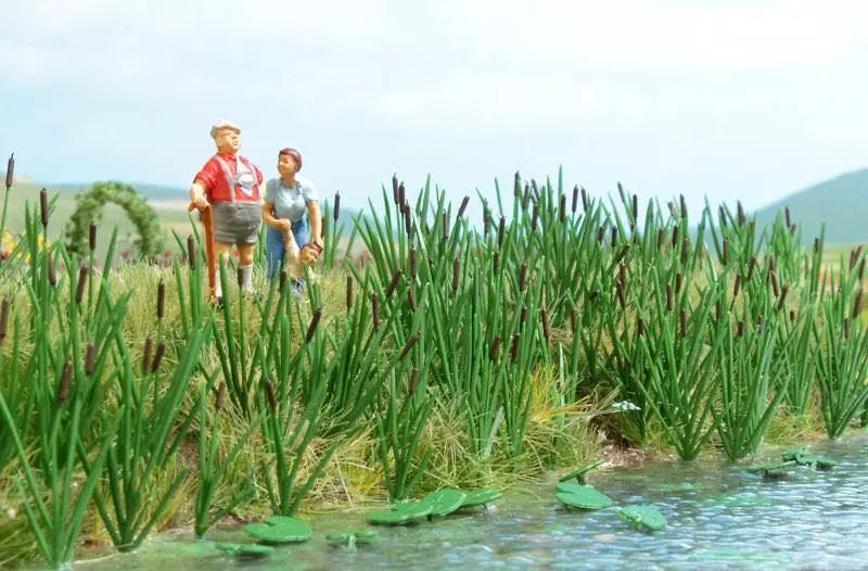 Bausatz für 120 Rohrkolbenbüschel, wie sie am Rand von Gewässern und Sümpfen zu finden sind. Realistisch in Kunststoff-Spritzgusstechnik dreidimensional hergestellt, wirken die Gräser und Rohrkolben absolut natürlich.