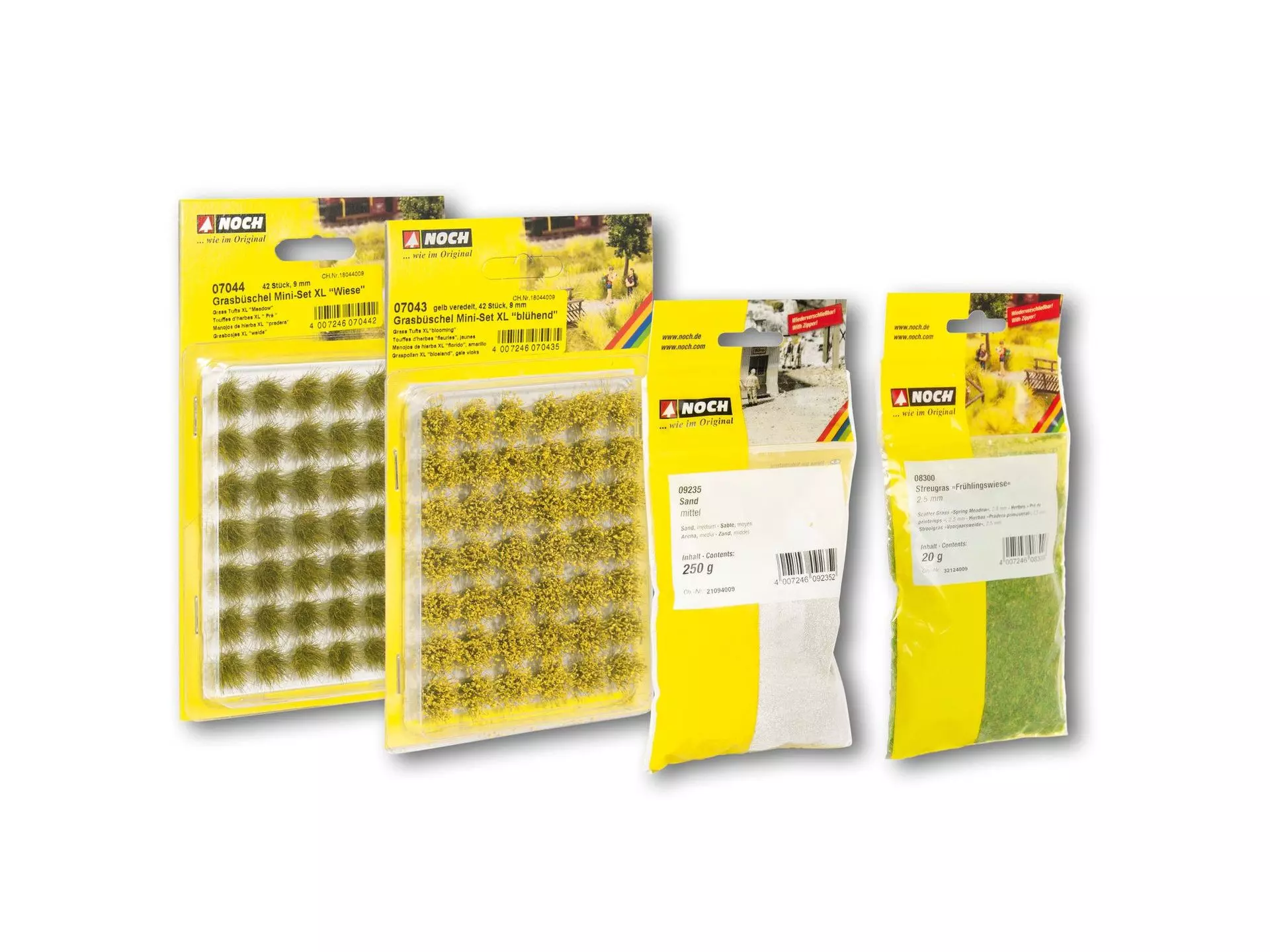 Mit einer immer größer werdenden Produktpalette fällt es machmal schwer sich zu entscheiden, welche Farben und Materialien es beim ausgestalten der Anlage werden sollen. Um Ihnen die Entscheidung zu erleichtern und Ihnen die richtigen NOCH Materialien für die verschiedenen Anwendungen zu empfehlen haben sich unsere Modellbauer die Mühe gemacht und spezielle Vegetations-Startsets für Sie zusammengestellt. Darin ist jeweils eine Auswahl der zu den verschiedenen Themen passenden Produkte enthalten. So können Sie direkt loslegen und die Wirkung und Anwendung der Materialien erfahren.