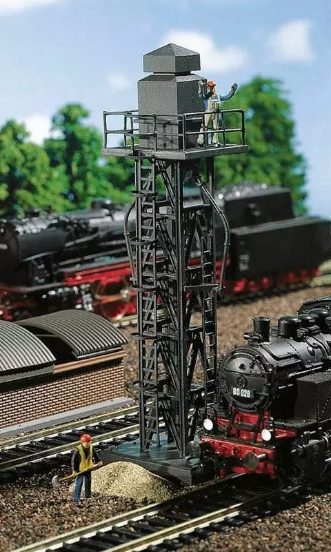 Ein vorbildgetreues Modell in filigraner Stahlkonstruktion mit Sand-Hochbehälter.