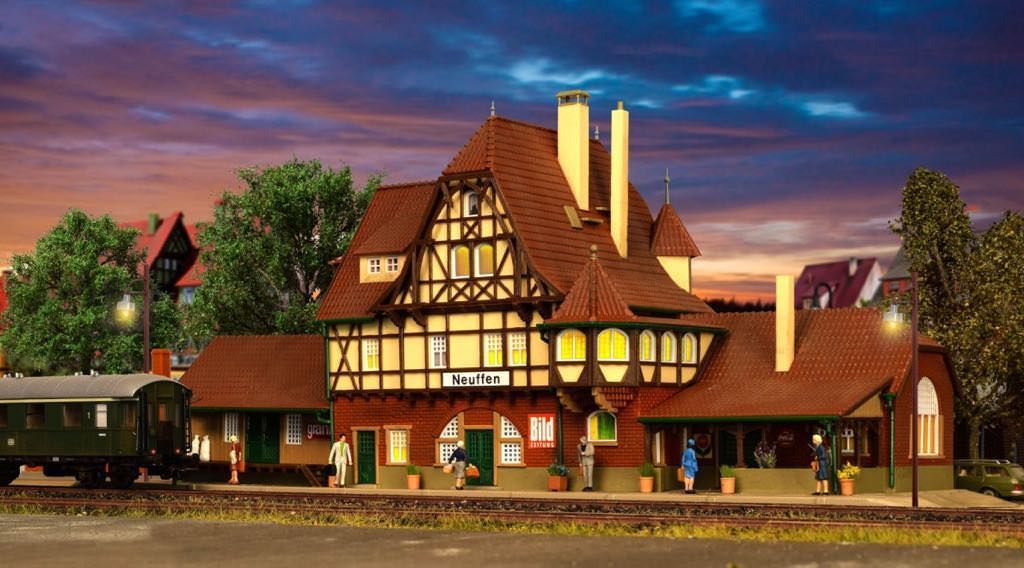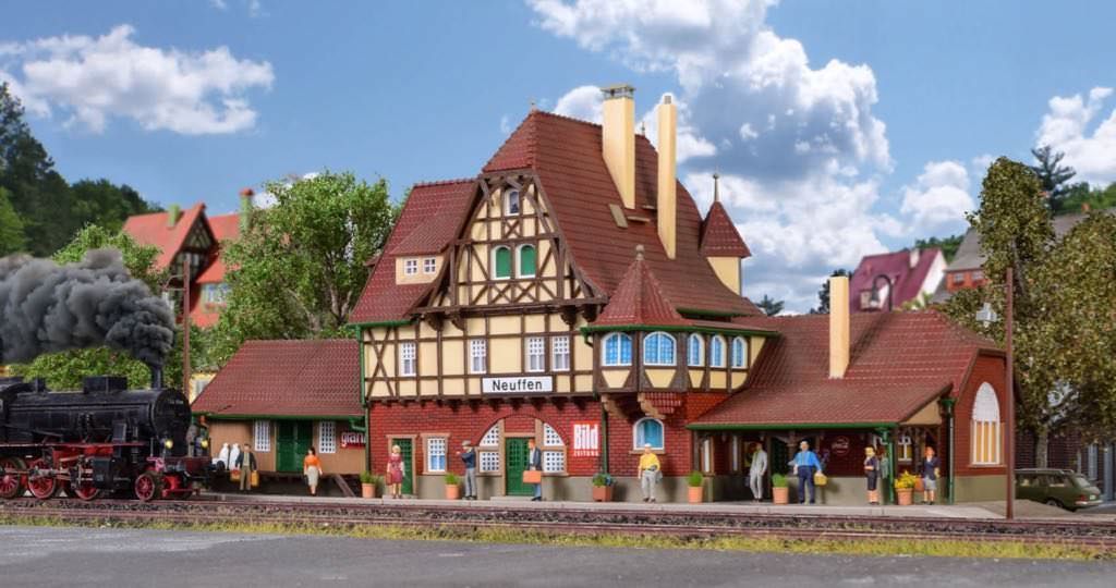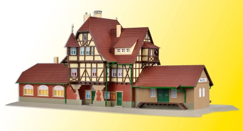 Der Bahnhof Neuffen ist ein typischer Landbahnhof. Er ist Endstation der Nebenlinie Nürtingen-Neuffen und steht am Fuß der Burgruine Hohen-Neuffen auf der Schwäbischen Alb. Das kurz vor der Wende zum 20. Jahrhundert errichtete, stilechte Bahnhofsgebäude wurde von Vollmer mit allen Details nachgebaut. Maße: L 41 x B 14 x H 16,5 cm.