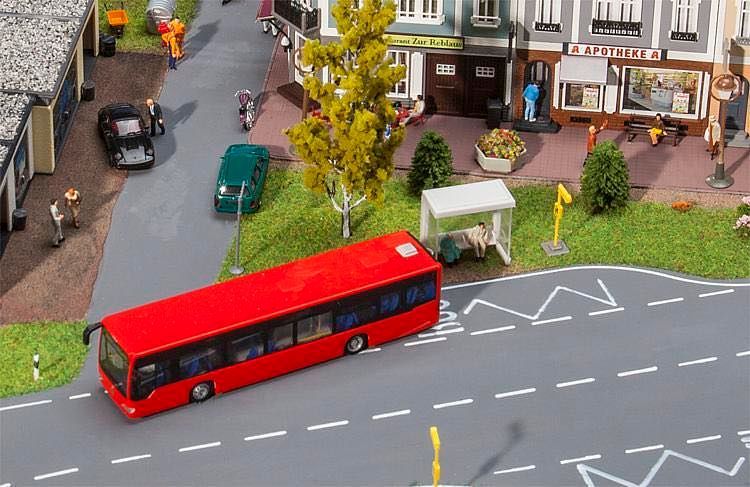 Kostengünstige Zusammenstellung. Das Bushaltestellen-Set enthält alle notwendigen Teile zum individuellen Bau einer funktionsfähigen, spurweitenneutralen Bushaltestelle. Neben einer zweckdienlichen Steuerung für eine Bushaltestelle (16 V Wechselspannung) sind 1 Stopp-Stelle, 1 Abzweigung, 2 Sensoren, 1 Zusatzmagnet (H0/N), 5 m Spezial-Fahrdraht, 1 Einbauschablone (H0/N) sowie eine ausführliche Anleitung im Set enthalten.