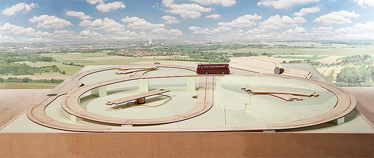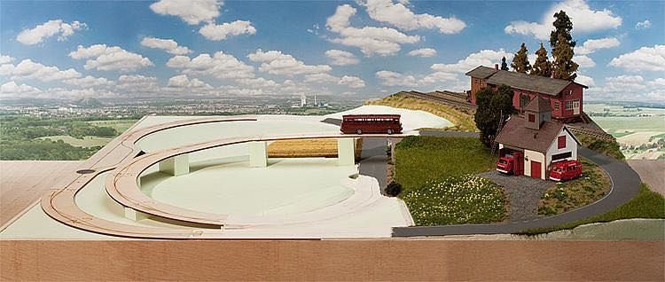 Mit diesen durch Zusammenstecken leicht zu verarbeitenden Straßenteile, die bereits die Rille für den Fahrdraht enthalten, lassen sich unterschiedliche 1- und 2-spurige Straßenverläufe bauen.
