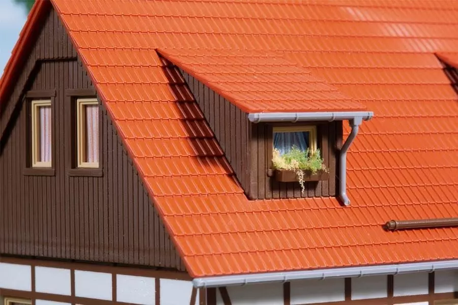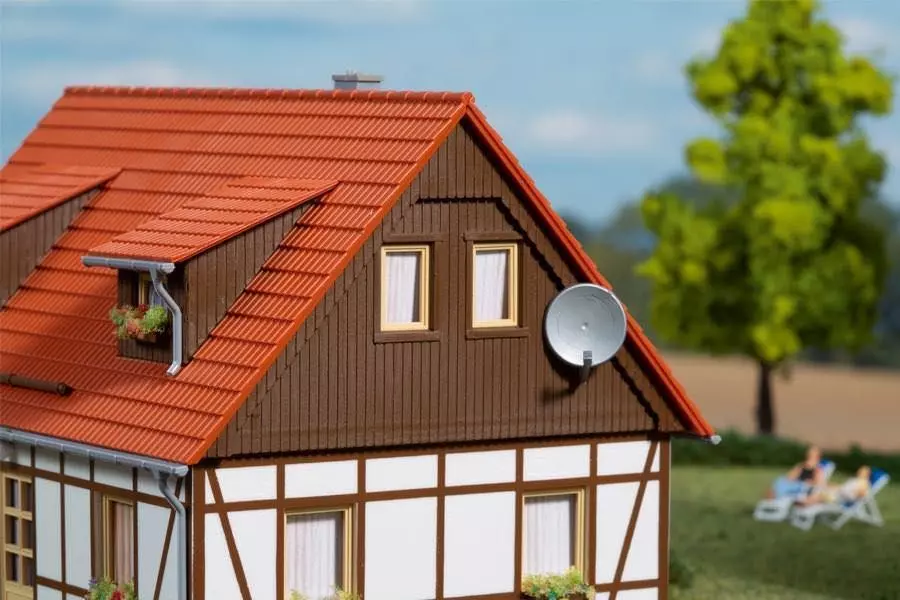 Durch die Beilage von Außenleuchten, Schneefangrundhölzern, Solarkollektoren, Dachentlüfter, Sat.-Anlage sowie Blumenkästen mit buntem Schaumflocken können Sie eine sehr realitätsnahe Szene gestalten.