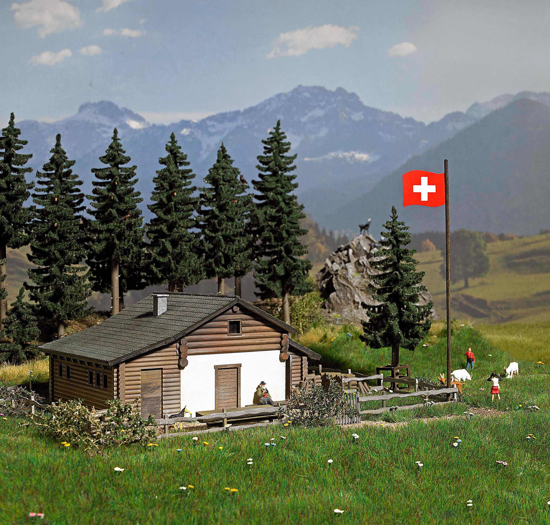 Diese idyllische Alpenszenerie ist wie geschaffen für die Modellbahnanlage oder auch für ein Diorama. Das große Busch-Sortiment bietet alle erdenklichen Produkte und Baumaterialien, um Berge, Wälder, Almen & Co. Realistisch in Szene zu setzen. Im Mittelpunkt dieser Bergwelt stehen nun die zwei berühmten Heidihäuser, die Busch exklusiv als Bausätze anbietet (1442 Heidihaus und 1443 Heidialp). Ihren berühmten Vorbildern bis ins kleinste Detail nachempfunden, sind die Gebäude leicht zu bauen und bilden die entsprechende Kulisse für alpenländische Architektur.