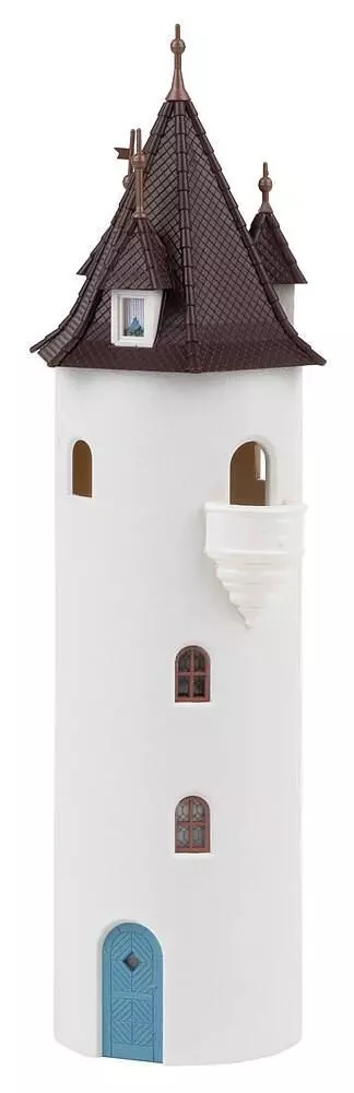 Aussichtsturm. Ehemaliger Wehr- und Wachturm mit hellem Anstrich, Rundbogenfenstern, kleinem Balkon und einem Zeltdach mit drei Dachgauben. Maße: 60 x 60 x 206 mm Epoche: I
