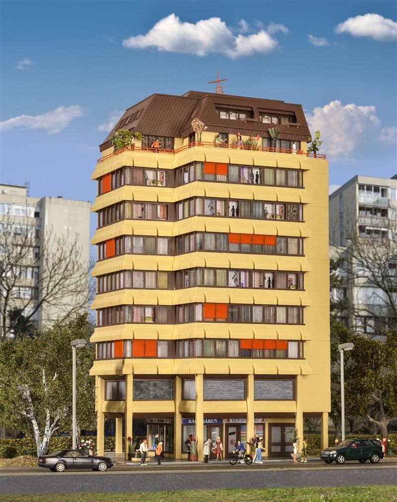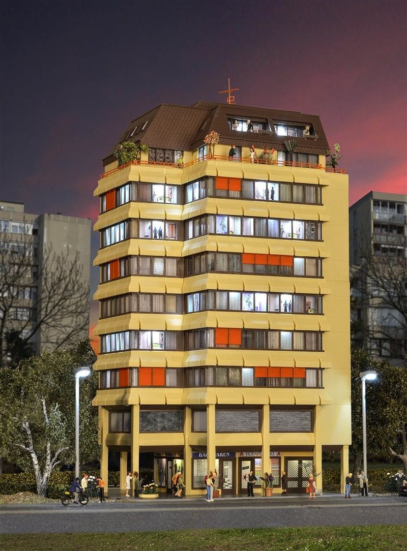 Eigenschaften "Kibri 38218 - Hochhaus mit Ladenpassage Penthauswohnung inkl. Etageninnenbeleuchtung H0 1:87"