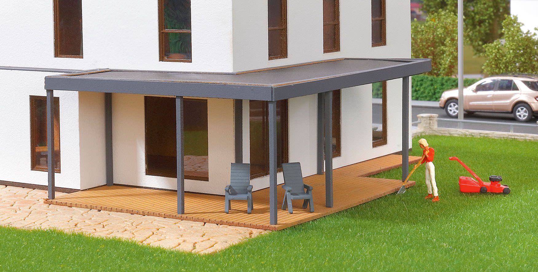 Produktinformationen "Kibri 38345 - Überdachte Terrasse Polyplate Bausatz H0 1:87"
