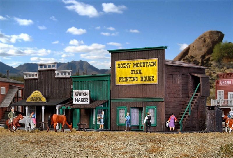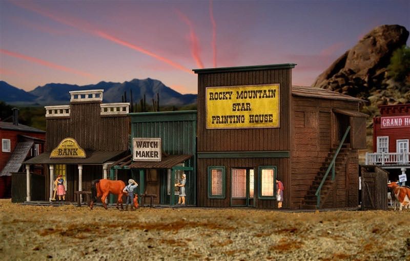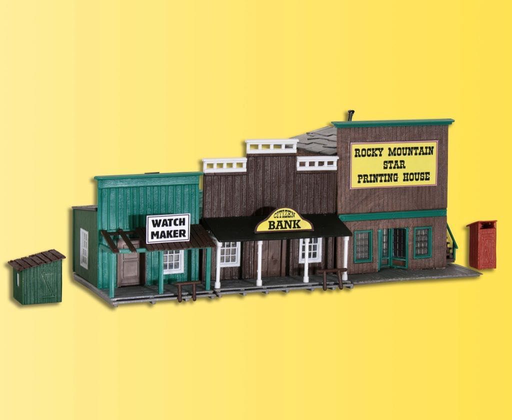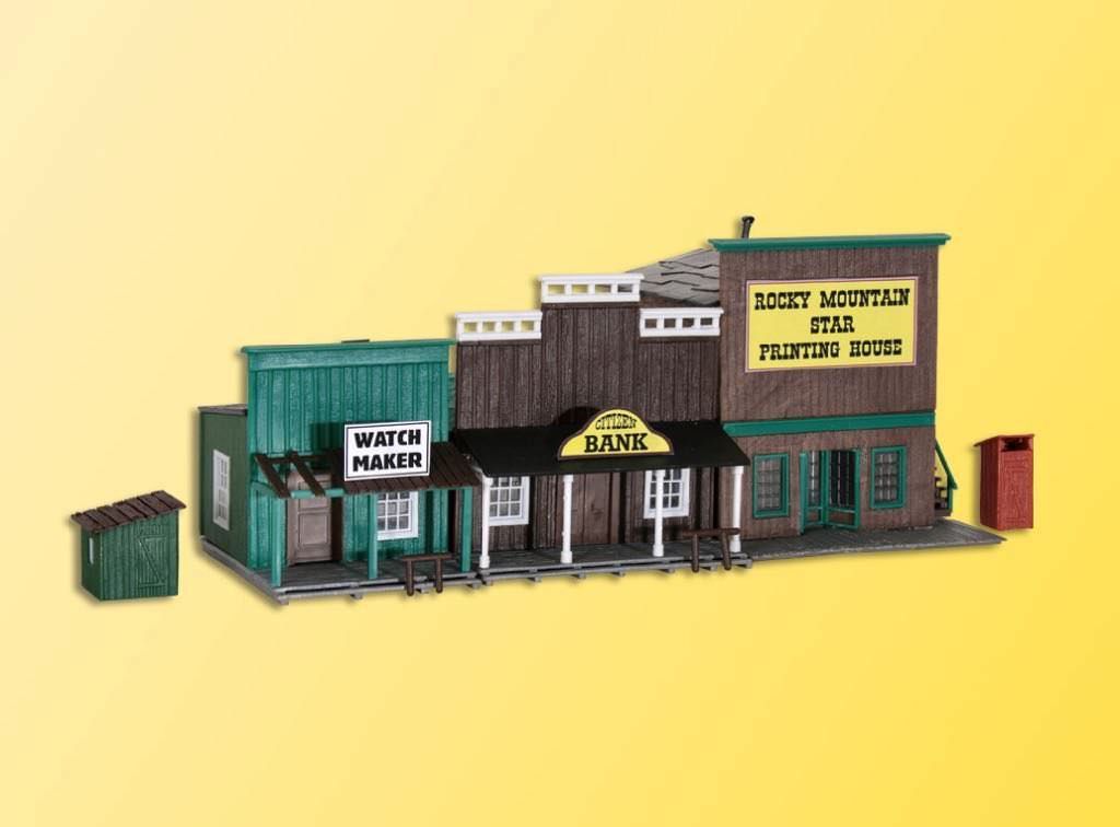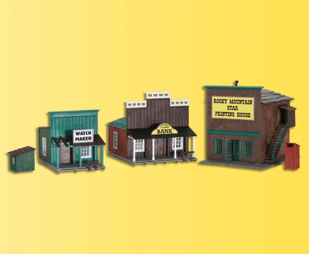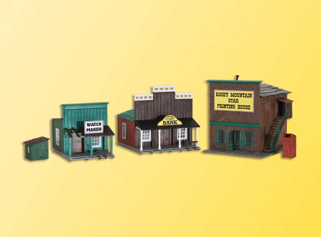 Bausatz. Mit den Westernhäusern Art. 38501, 38502, 38504, 38506 und 38508 holen Sie sich den Wilden Westen auf Ihre Modellanlage. Jedes Set besteht aus 3 Gebäuden. Maße: L 5,6 x B 8 x H 6,5 cm, L 8,5 x B 10,5 x H 9,7 cm, L 8 x B 10 x H 8,2 cm. Schwierigkeitsgrad: 2 (Fortgeschrittene).