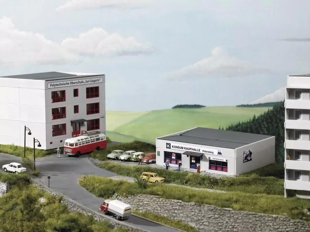 Die Plattenbausiedlung wird durch diese typische Kaufhalle ergänzt. Sie erweitert die Möglichkeiten des authentischen Nachbaus einer größeren Plattenbausiedlung der 70er Jahre.