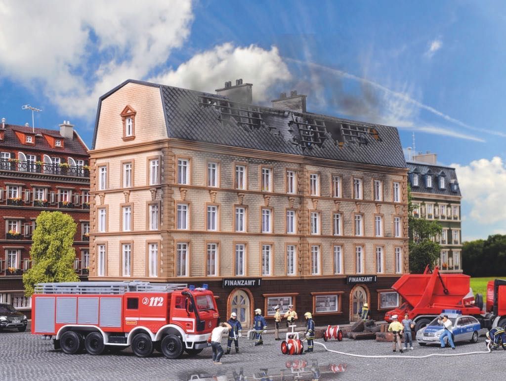 Produktinformationen "Vollmer 43785 - Brennendes Finanzamt mit Flackerlicht H0 1:87"