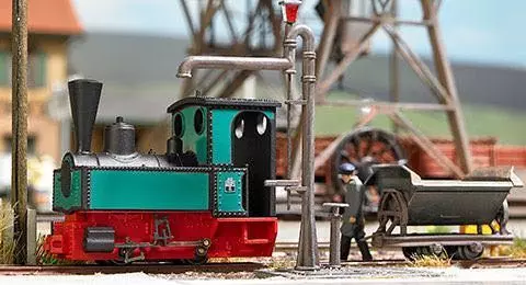 Das Vorbild stammt aus der Werkstatt des französischen Feldbahn-Pioniers Paul Decauville (1846 - 1922), der ab 1875 ein eigenes Feldbahnsystem bestehend aus Schienen, Loren und Lokomotiven entwickelte. Aufgrund ihrer Verbreitung und langen Laufzeit in verschiedenen Epochen ist diese Dampflok universell für viele Einsatzmöglichkeiten wie Waldbahn, Ziegeleibahn, Tourismusbahn, Straßenbahn, im Tagebau und als Heeresfeldbahn geeignet. Heute sind noch vier dieser robusten Lokomotiven im Original erhalten. Eine davon kann man betriebsfähig im Frankfurter Feldbahnmuseum (www.feldbahn-ffm.de) bewundern. Das Fahrzeug aus dem frühen 20. Jahrhundert hat ein Dienstgewicht von 6,5 Tonnen und eine Leistung von 20 PS. Typisch sind die großen Wasserkästen, die der Lok einen beachtlichen Aktionsradius ermöglichen. Viele Details, wie z.B. die Bauweise mit außen liegendem Rahmen, sind im Modell perfekt umgesetzt. Die filigranen Treibstangen sind sogar voll beweglich ausgeführt. Neue (größere) Wagen für die verschiedensten Transportzwecke runden diese Neuheitenentwicklung ab, wobei die Dampflok natürlich alle Wagen aus dem Busch Feldbahnsortiment ziehen kann.