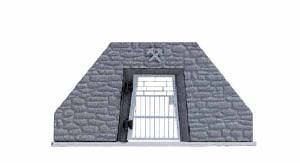 Eingang eines Bergwerkstollens für Bergleute oder Gäste eines Besucherbergwerks. Ca. 72 mm breit und 37 mm hoch.