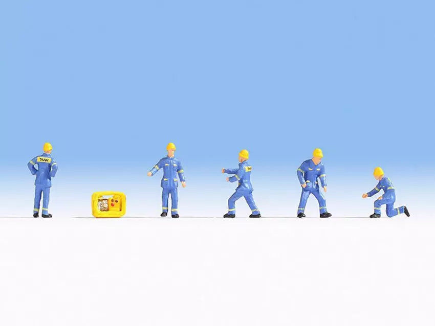Das Set enthält fünf Mitarbeiter des technischen Hilfswerks im Einsatz und einen gelben Generator. Die Modellfiguren sind im Maßstab H0 (1:87, ca. 2 cm hoch) ausgeführt und tragen die typisch blauen Uniformen des THW. Die Kunststoff-Figuren sind liebevoll handbemalt und ideal für den Einsatz auf der Modelleisenbahn oder auf Dioramen geeignet.