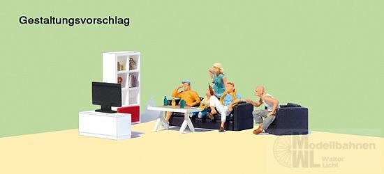 Produktinformationen "Preiser 10649 - Familie beim Fernsehen mit Wohnzimmereinrichtung H0 1:87"