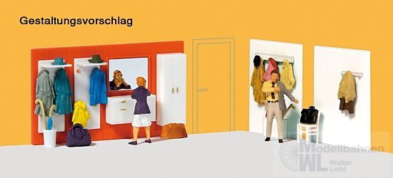 Produktinformationen "Preiser 10658 - Beim Anziehen mit Garderobeneinrichtung H0 1:87"