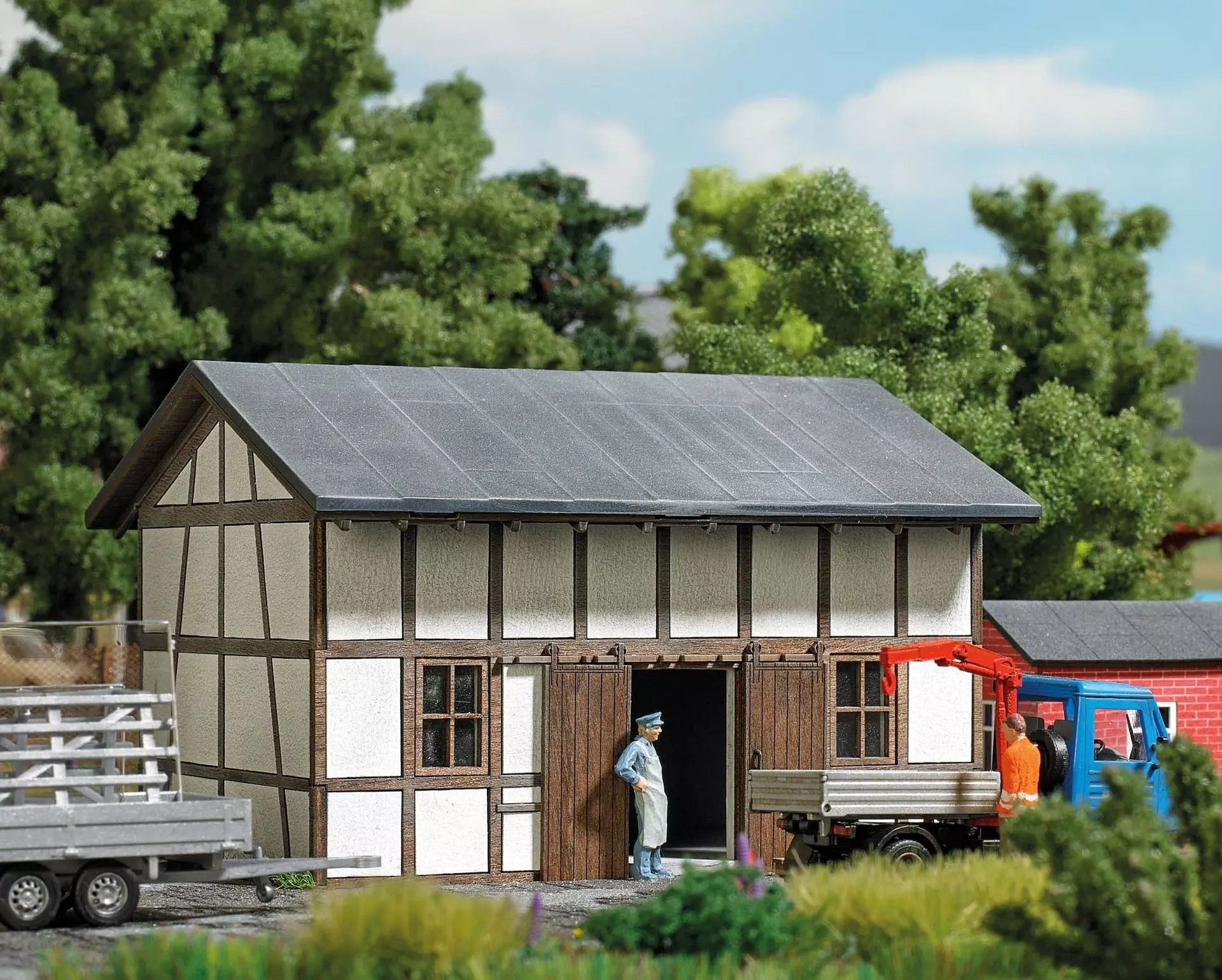 Dieser Bausatz ist der perfekte Einstieg für den Bau von Fachwerkgebäuden von Busch. Die durchdachte Konstruktion und die ausführlich illustrierte Montageanleitung garantieren ein abwechslungsreiches Bastelerlebnis mit tollem Ergebnis. Fachwerk, Fenster und das zweiflügelige Holztor (24 x 26 mm) sind aus echtem Holz, alle Teile fertig koloriert. Beleuchtbar mit Busch LEDs 5998.