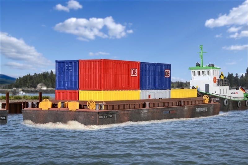 Bausatz. Schubleichter sind unbemannte offene Wasserfahrzeuge, die genormte Größen aufweisen. In der Binnenschifffahrt werden in der Regel 2 oder 4 Leichter zu einem starren Schiffsverband zusammengekoppelt. Ihre Anzahl ist abhängig von der Wasserbreite eines Flusslaufes oder Kanals. Durch seine kastenförmige Form hat der Leichter nur geringen Tiefgang. Mit den beweglichen Rollluken lässt sich die Schiffsladung aus Erz, Sand oder Getreide abdecken, zum Transport von Containern werden die Luken entfernt. Maße: L 28 x B 9 x H 2,8 cm. Schwierigkeitsgrad: 2 (Fortgeschrittene).
