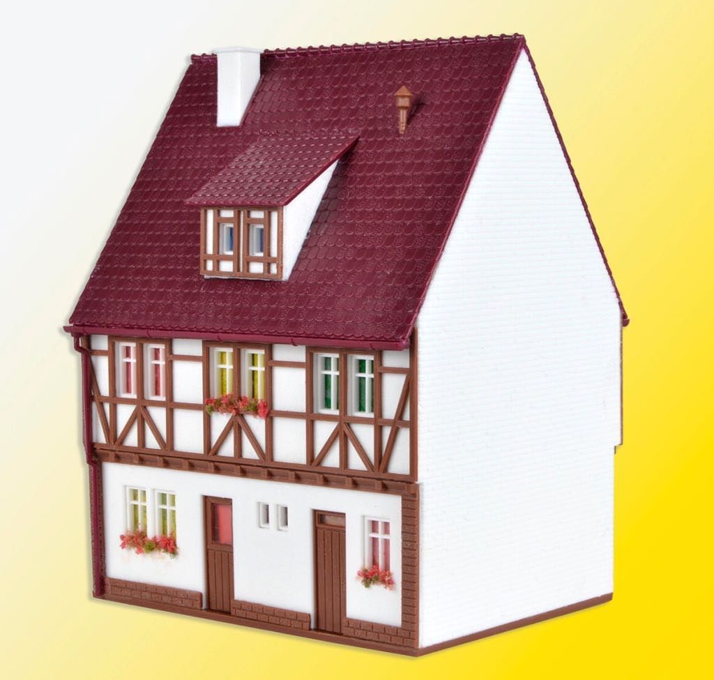 Mit den Bausätzen der Vollmer Bahnhofstraße 9 – 19 können Sie einen kompletten Straßenzug mit Wohn-, Geschäfts- und Fachwerkhäusern gestalten. Bereits mit 4 Bausätzen schaffen Sie sich eine preiswerte und abwechslungsreiche Häuserfront. Maße: L 10 x B 9 x H 13 cm.