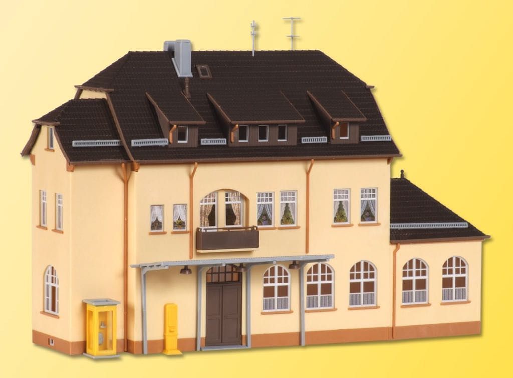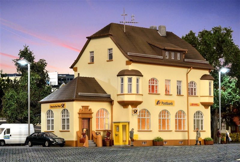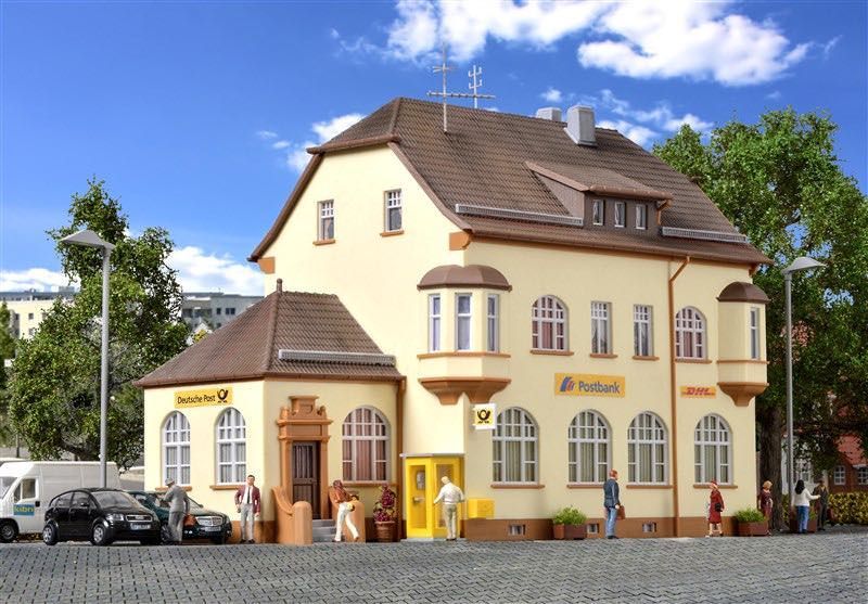 Bausatz. Fein detailliert und auch in moderneren Epochen einsetzbar, wird das Postamt Munderkingen mit seinen beiden angesetzten Erkern zum wunderschönen Blickfang auf der Modellbahn. Eine richtige Poststelle darf auf einer Anlage natürlich nicht fehlen. Ob der Briefkasten heute wohl schon geleert wurde? Maße: L 23,5 x B 14 x H 17 cm. Schwierigkeitsgrad: 2 (Fortgeschrittene).