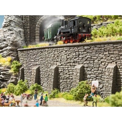 Natursteinmauern sind vor allem in ländlicher Umgebung sehr häufig zu finden. Die Mauern, Arkaden und Portale werden dabei kunstvoll mit Hilfe von regional gebrochenen Steinen erbaut. Die Hartschaum-Serie "Natursteinmauer" begeistert durch ihre äußerst realistische Gesteinsstruktur und die mehrdimensionale Gestaltung vieler Details wie Simse oder Vorsprünge. Die Portale sind für Oberleitungs-Betrieb geeignet.