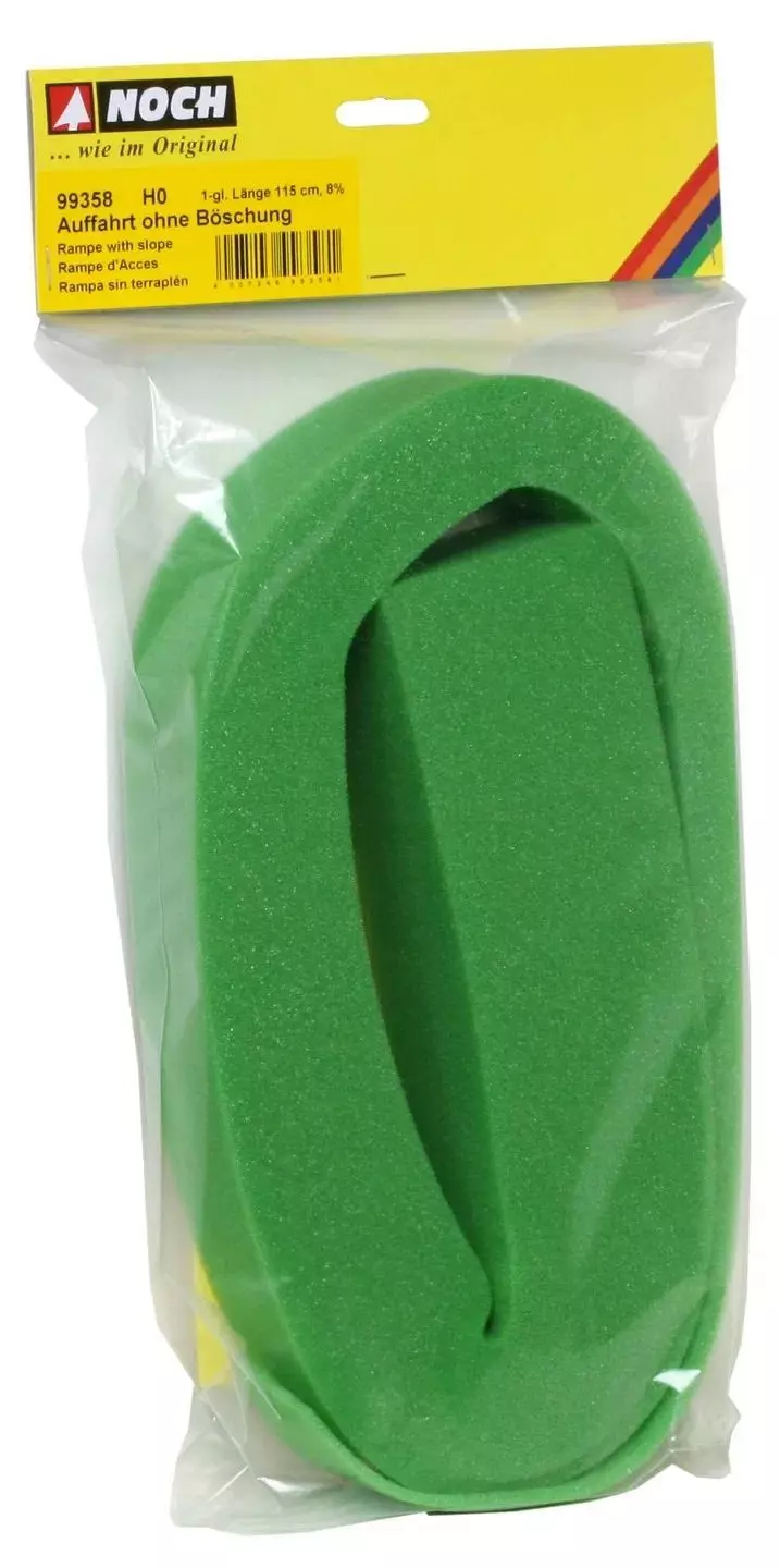 Die Auffahrt ohne Böschung besteht aus einem sehr flexiblen, aber trotzdem stabilen Schaumstoff, welcher mühelos nach dem Verlauf Ihres Gleisplans zurechtgebogen werden kann. Diese Auffahrt ist für den 1-gleisigen Bahnbetrieb vorgesehen und hat eine Steigung von 8 %. Die Gesamtlänge der Auffahrt beträgt 115 cm.