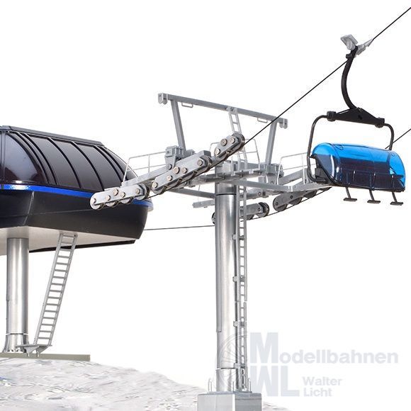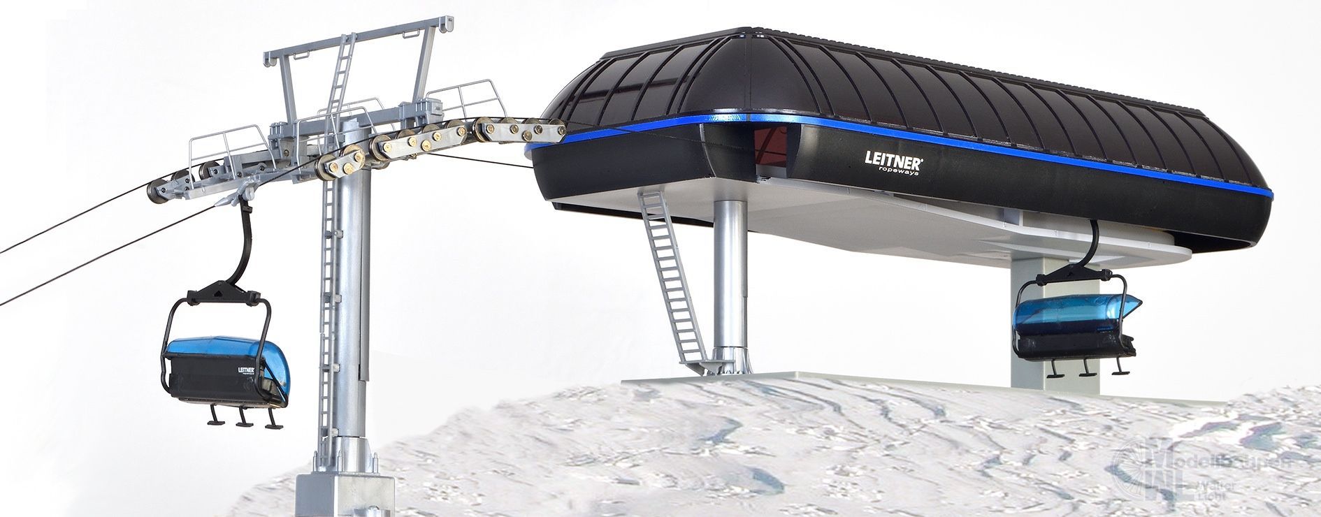 Das neue BRAWA-Modell hat eine State of the Art kuppelbare 6er-Sesselbahn von LEITNER ropeways zum Vorbild und wird als Set aus einem Gebäudebausatz für Berg- und Talstation, den Stützen und Sesseln sowie einem leistungsstarken und geräuscharmen Motor geliefert.