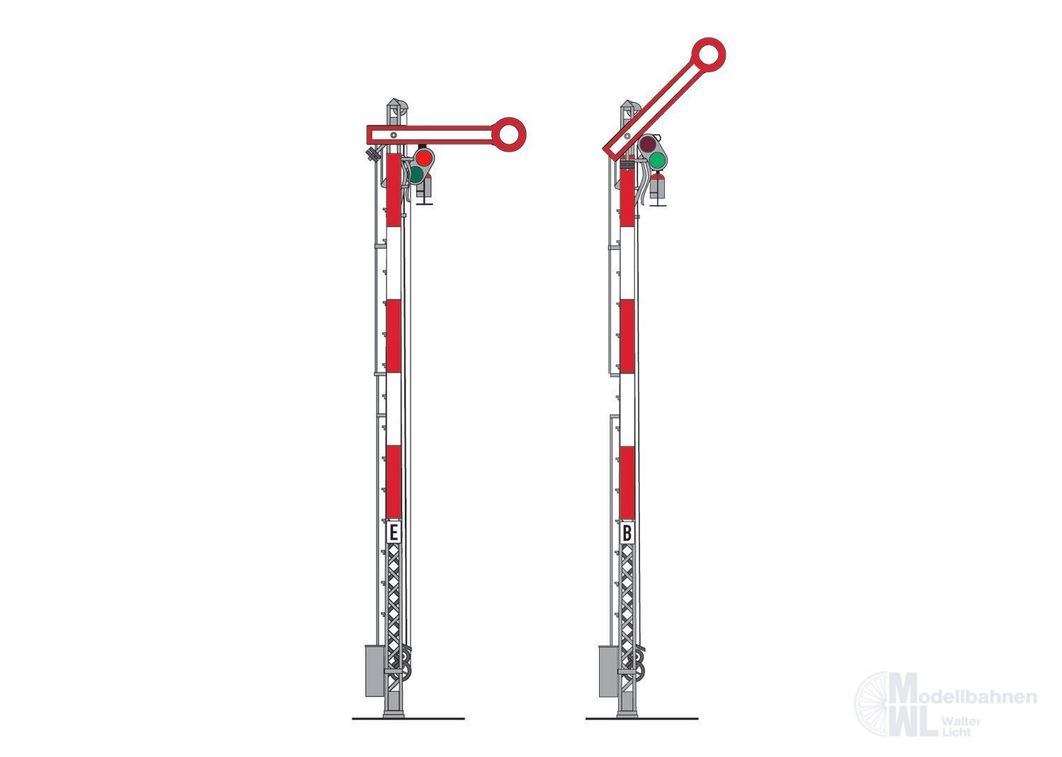 Mit einem Flügel und durchbrochenem Gittermast. Wechsel von Rot auf Grün.