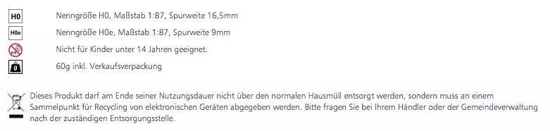 Eigenschaften "Tillig 85260 - Kreuzung H0 rechts/H0e links Länge 232 mm Kreuzungswinkel 15° H0-H0e"