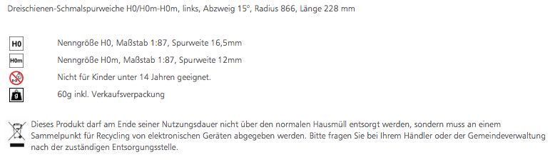 Eigenschaften "Tillig 85194 - Dreischienen-Schmalspurweiche H0/H0m-H0m links Länge 228 mm"