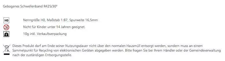 Eigenschaften "Tillig 85041 - Gebogenes Schwellenband R425/30° H0/GL"