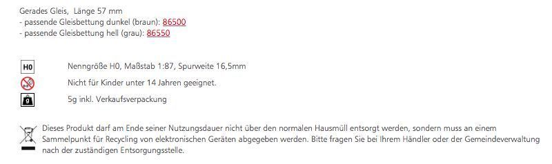 Eigenschaften "Tillig 85131 - Gerades Gleis Länge 57 mm H0/GL"