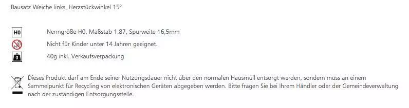 Eigenschaften "Tillig 85422 - Bausatz Weiche links Herzstückwinkel 15° H0/GL"