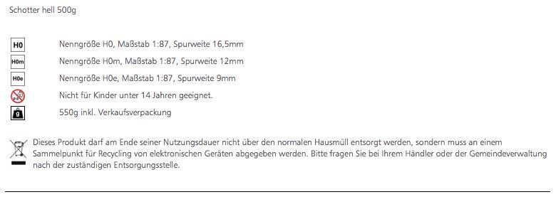 Eigenschaften "Tillig 86607 - Schotter hell 500 g"