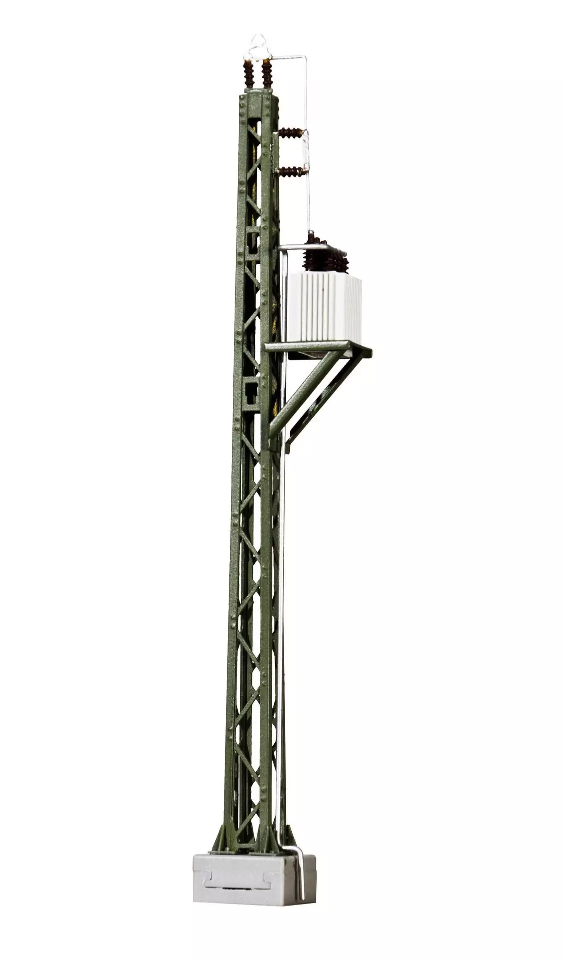 Bestehend aus Trafo, Konsole, Zuleitungen, Isolatoren und Mastschalter. Geeignet zur Montage an folgende Turmmasten aus dem Viessmann Oberleitungssystem: Art. 4114, 4115, 4116, 4117. Passende Rohrausleger: Art. 4160, 4161. Passende Quertragwerke: Art. 4162, 4163.