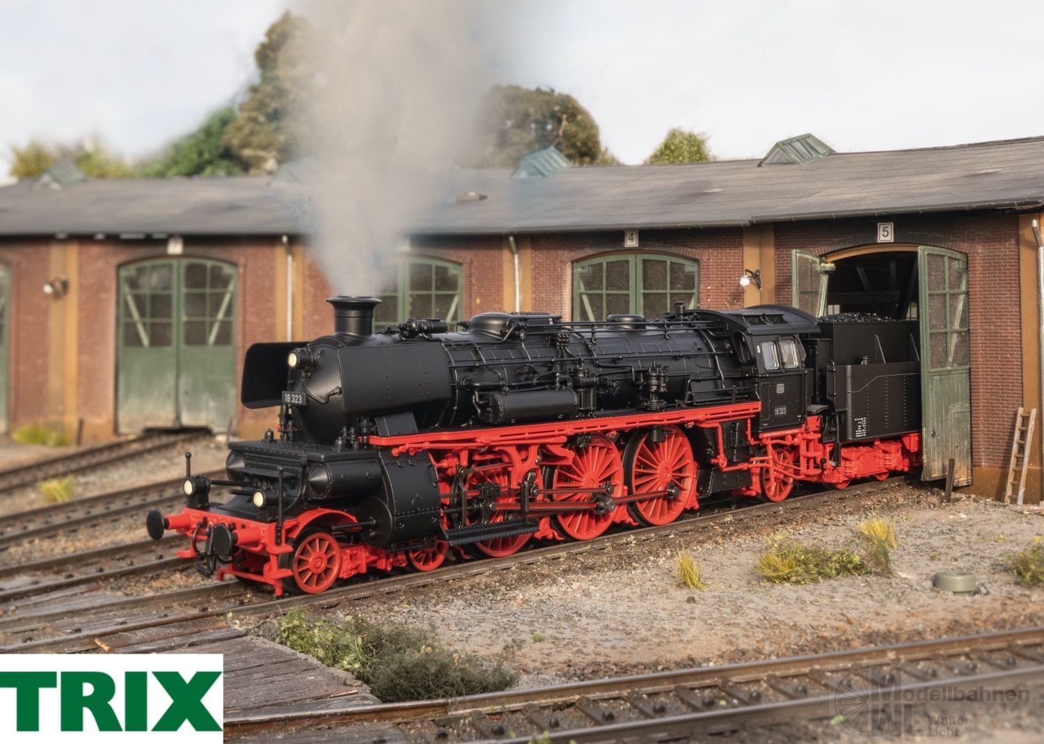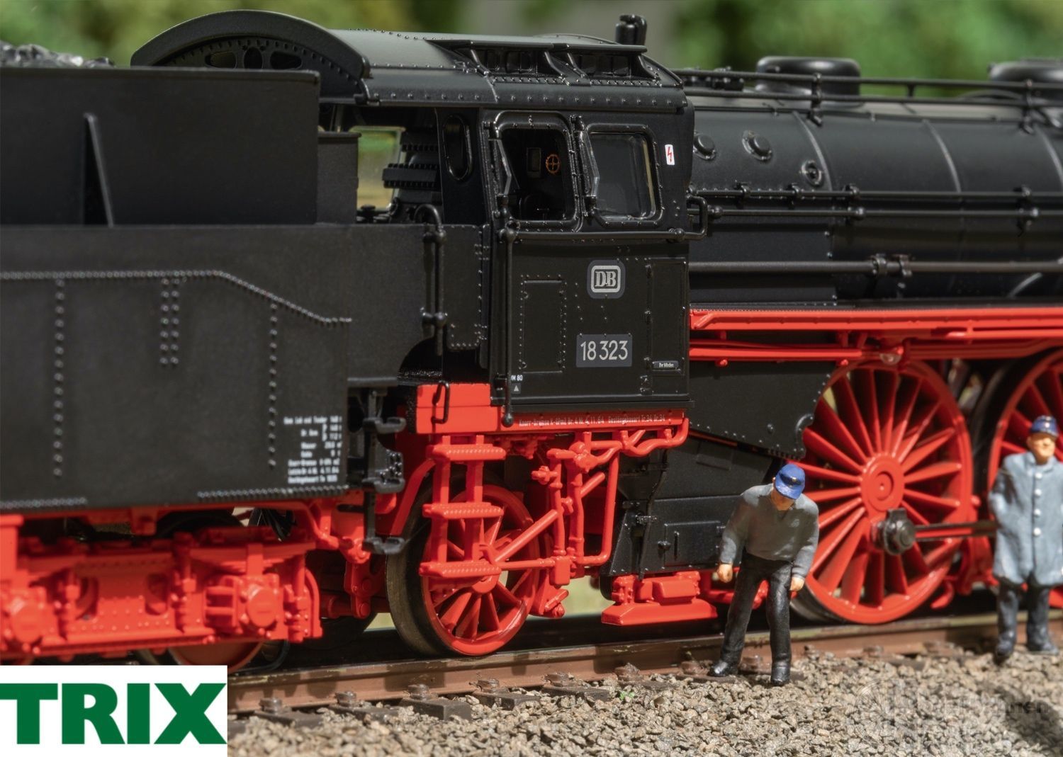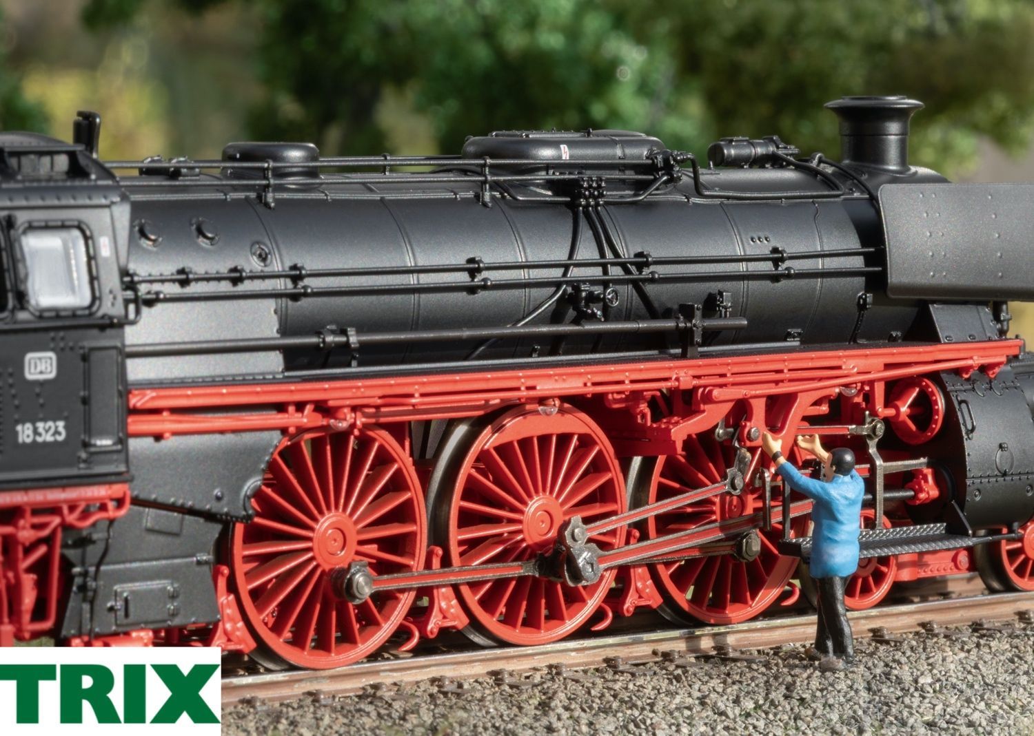 Sie war bis in die späten Sechziger eine wirkliche Ikone auf DB-Gleisen: Die wuchtige Schnellzugdampflok 18 323, die das Zeug hat, als perfekt gestaltetes Modell ein Star im Trix H0-Programm zu werden. Als bärenstarke und schnelle Maschine kam sie bis 1969 in der gesamten Bundesrepublik unter der Regie des Bundesbahn-Zentralamts zum Einsatz. Das neue Trix H0-Modell ist somit ein wirkliches Highlight in jeder Sammlung und auf jeder Anlage, die in der wichtigen DB-Epoche III spielt. Ihr Auftritt inmitten von damals ultramodernen Diesel- und Elektroloks und den weit verbreiteten Einheits-Dampfloks wird wie einst beim großen Vorbild für großes Aufsehen sorgen. Mit ungewöhnlichen Geschichten, die mit dieser deutschen Lok-Ikone verbunden sind.