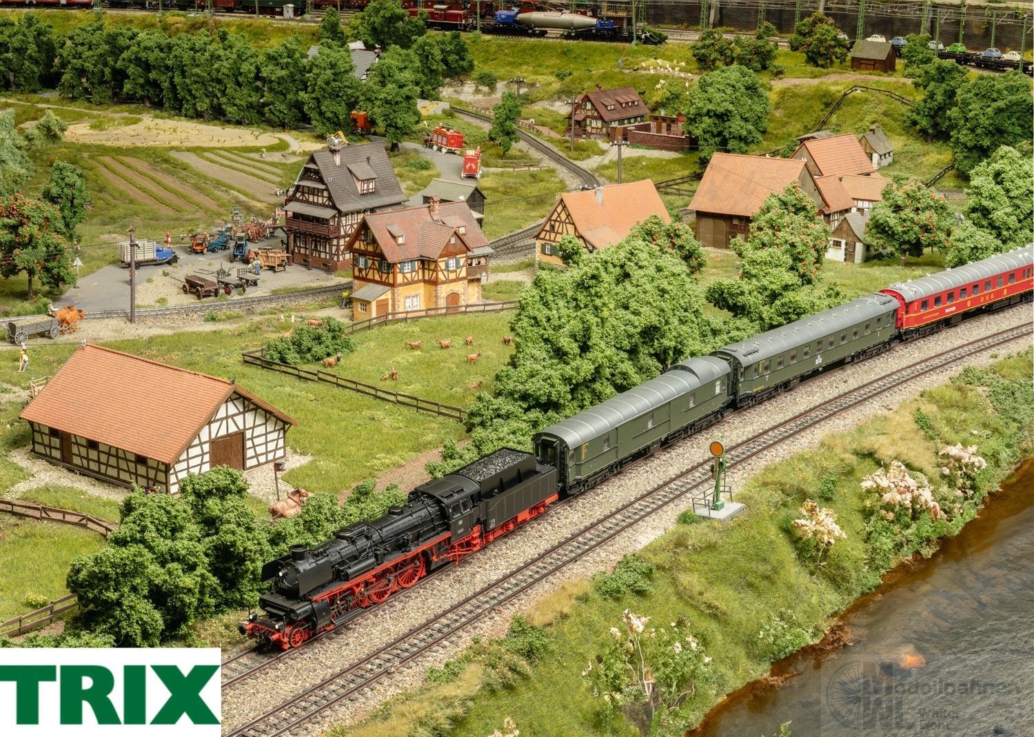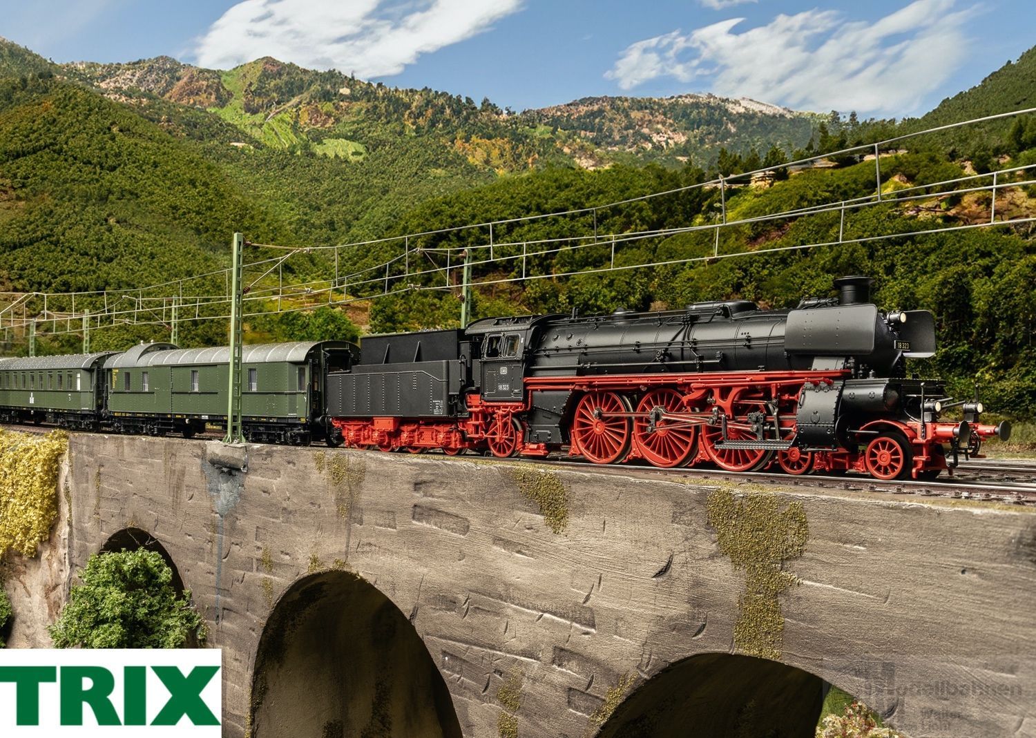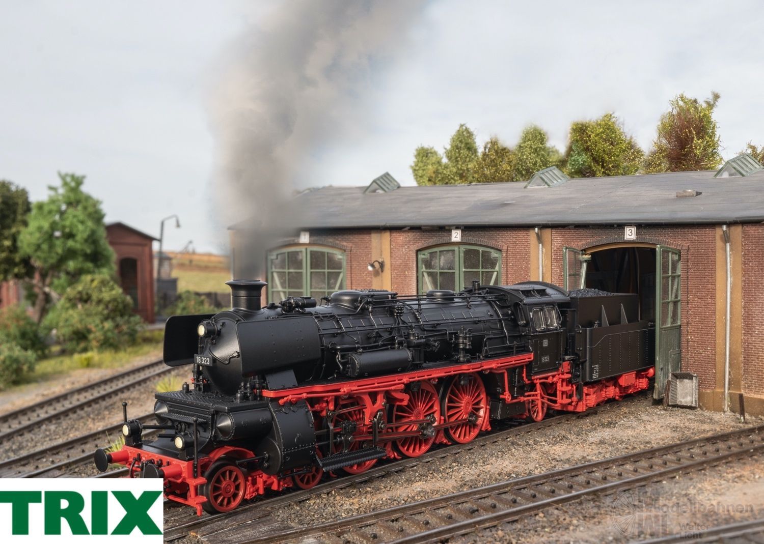 Sie war bis in die späten Sechziger eine wirkliche Ikone auf DB-Gleisen: Die wuchtige Schnellzugdampflok 18 323, die das Zeug hat, als perfekt gestaltetes Modell ein Star im Trix H0-Programm zu werden. Als bärenstarke und schnelle Maschine kam sie bis 1969 in der gesamten Bundesrepublik unter der Regie des Bundesbahn-Zentralamts zum Einsatz. Das neue Trix H0-Modell ist somit ein wirkliches Highlight in jeder Sammlung und auf jeder Anlage, die in der wichtigen DB-Epoche III spielt. Ihr Auftritt inmitten von damals ultramodernen Diesel- und Elektroloks und den weit verbreiteten Einheits-Dampfloks wird wie einst beim großen Vorbild für großes Aufsehen sorgen. Mit ungewöhnlichen Geschichten, die mit dieser deutschen Lok-Ikone verbunden sind.